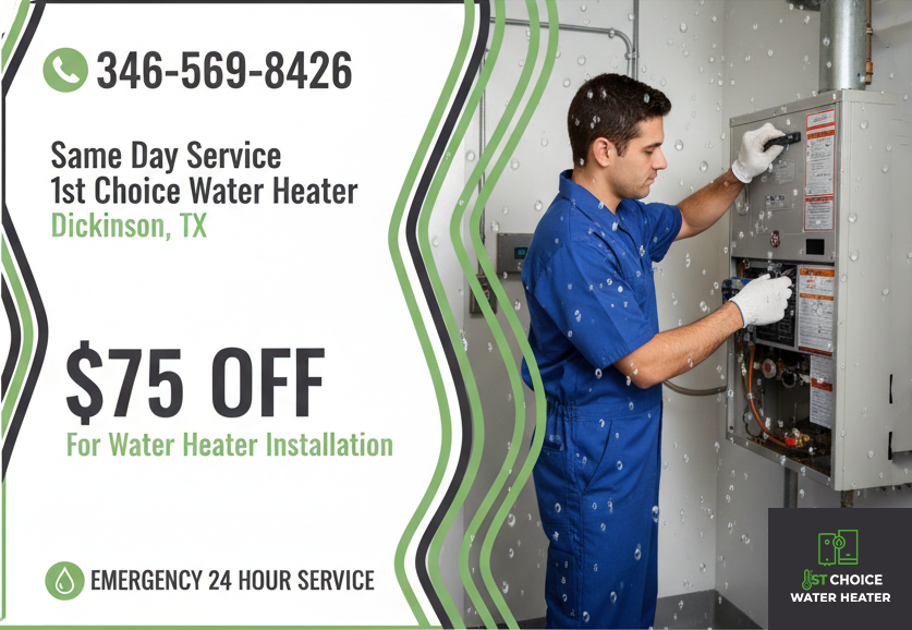 1st Choice Water Heater Dickinson TX restores heat instantly with fast fitting, correction and swapping for gas, electric and tankless systems, your shortcut to comfort and quick relief.